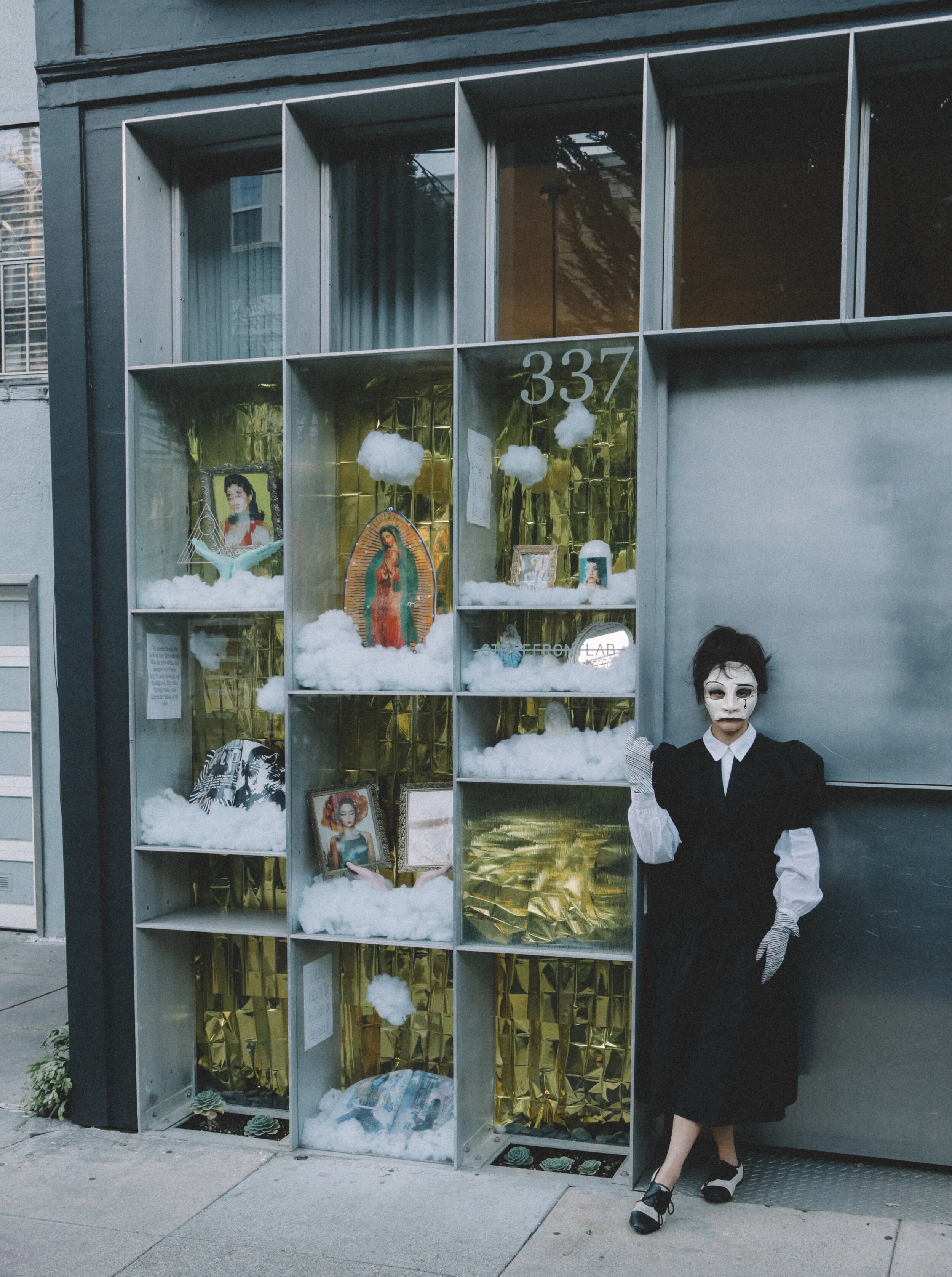 As part of a month-long installation (November 2020) at StoreFrontLab, artist Jenell Del Cid opened a window into the luscious escapism and potentially transcendent nature of dreams and dreaming. Through the iconography of gold, clouds, and endlessly shifting dream imagery, Jenell presented the act of sleep and dreaming into a tool for creating future narratives: our cloudy, diffuse, subconscious wanderings become a bridge to a potential future “Golden Age,” the unhindered visions of dream, alchemically transformed to gold. Jenell posed the possibility of seeking solace in the cloudiness of ephemeral fantasies in a chaotic age. In Mayan cosmology, the creator took the form of a cloud, from whence they created the universe.