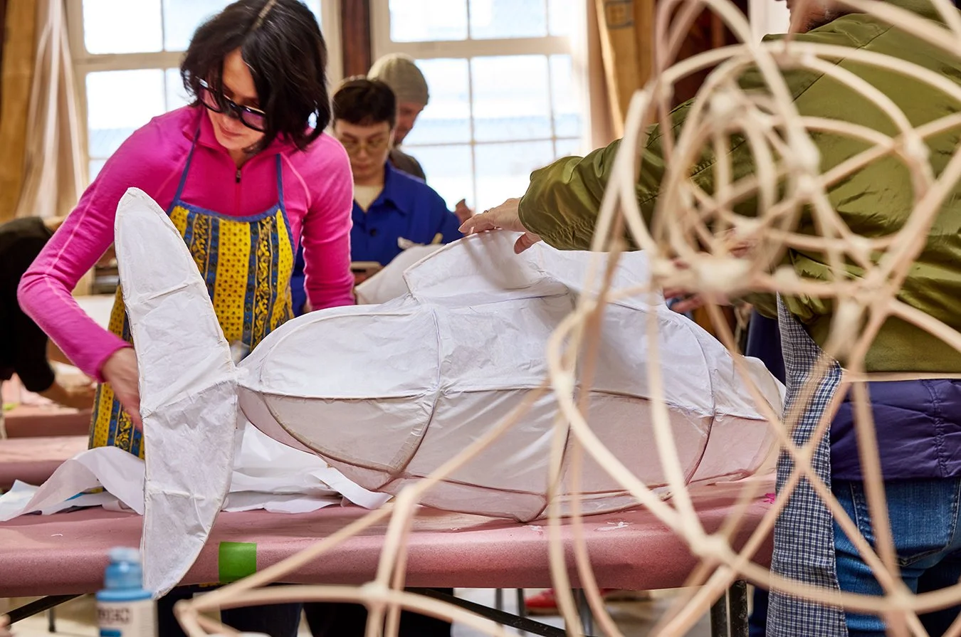 At our second session, we will continue work underway and bring new folks into the fold. Unlike craft experiences where students make something to bring home, we are collectively sharing and learning as we build lanterns for this public celebration. Come join us!