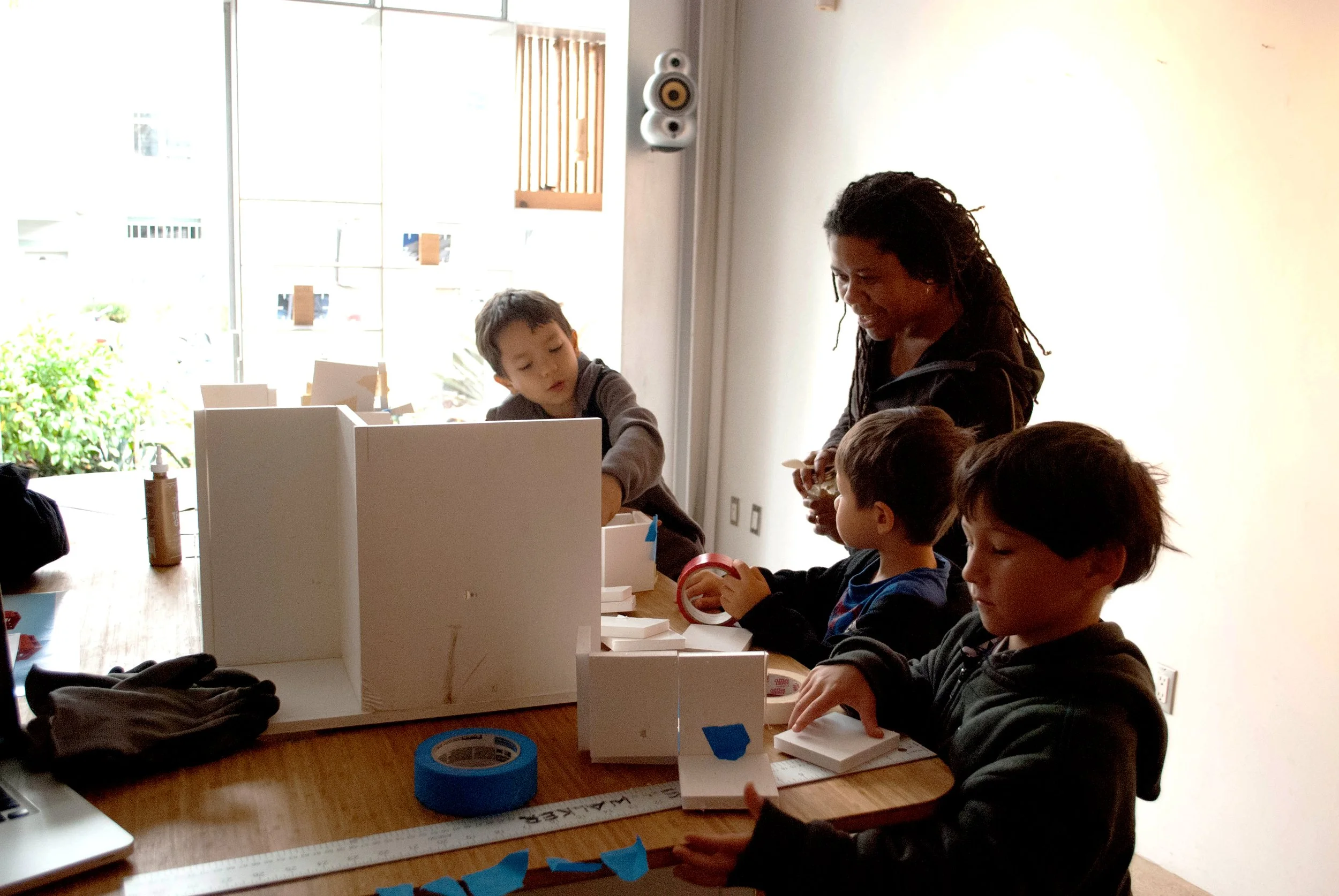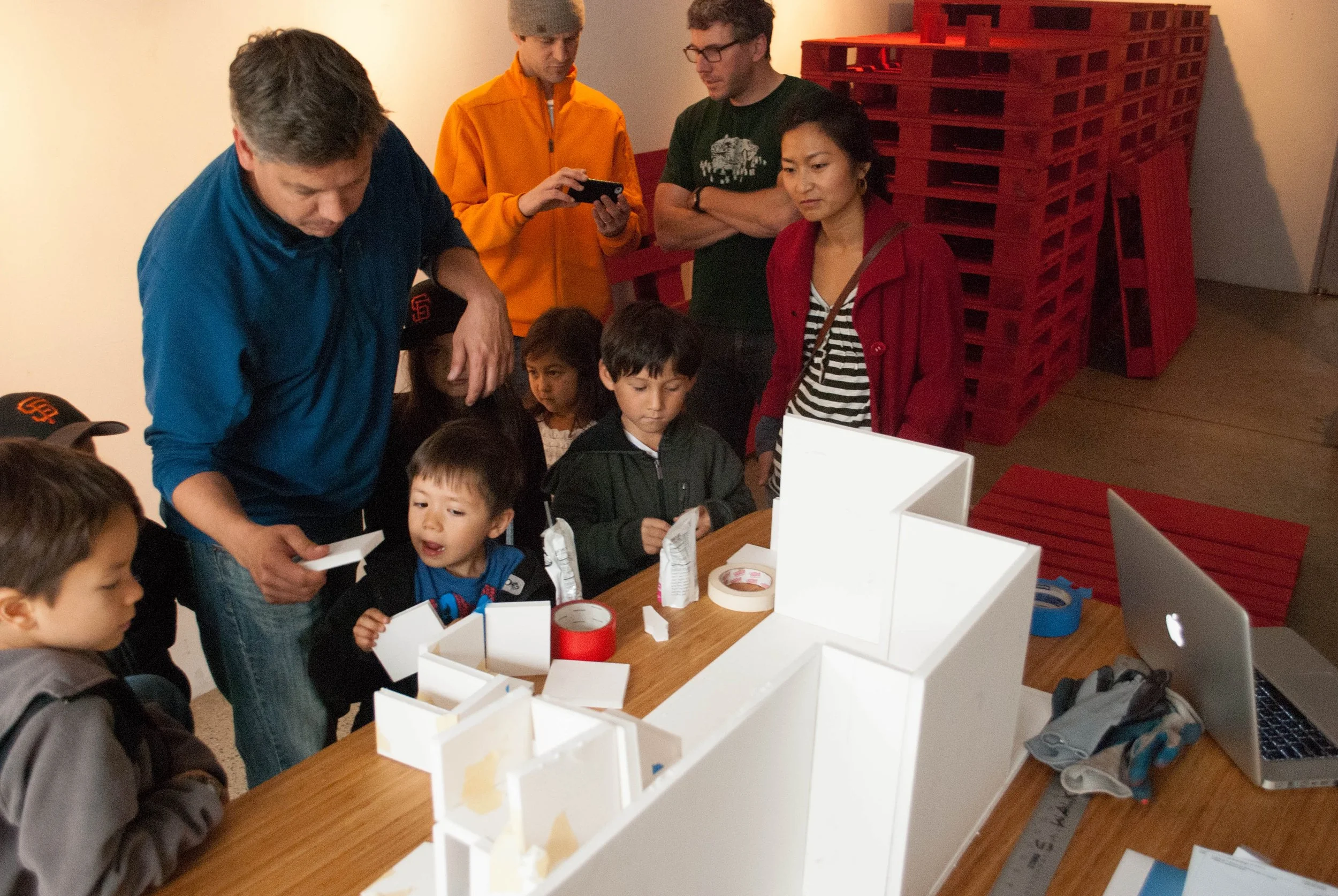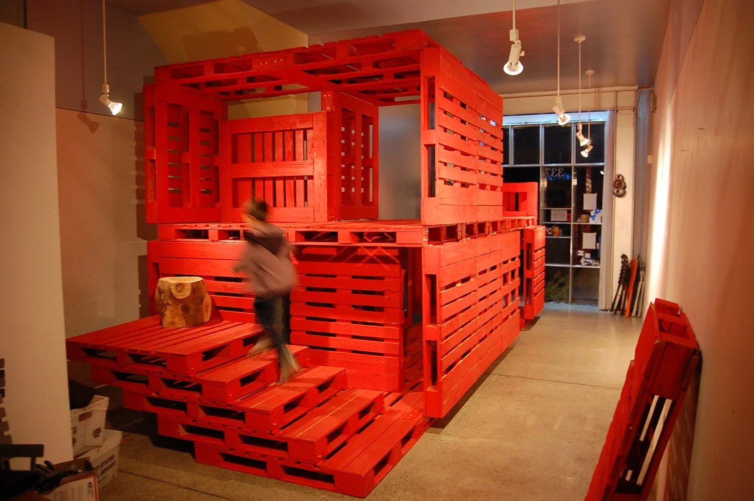 Architect Steve Walker hosted this design-build workshop engaging children in the creating of a temporary, play space made from shipping pallets. October 13-28, 2012