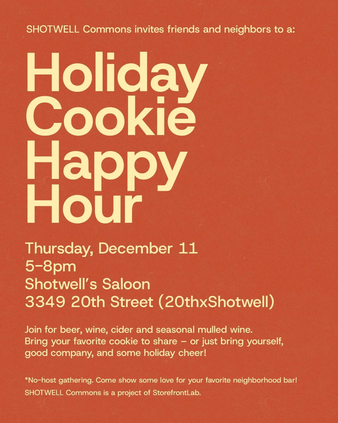To get things going, we’re hosting a Holiday Cookie Happy Hour at Shotwell’s Saloon, the official meeting place of SHOTWELL’s editorial team. Folks are invited to bring their favorite cookies to share, and along with its usual line-up of craft beers, Shotwell’s will have its seasonal mulled wine on offer. “Perfect for dipping cookies,” notes Shotwell’s co-owner David Hall.