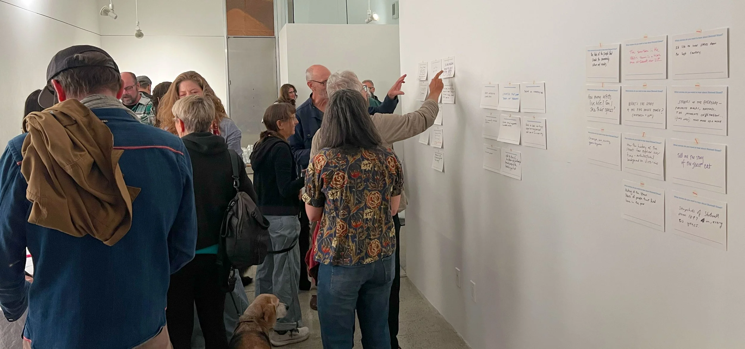 Our Fall Social drew a lovely turn out of StorefrontLab regulars and new friends, who together contributed ideas and enthusiasm for our new project – SHOTWELL, a hyper-local journal about one street. The idea for SHOTWELL came about as a response to the crime reporting and calling out that is so prevalent on NextDoor, the sense that there is so much more we could be sharing that would deepen our connection to our neighborhoods and each other. While SHOTWELL will focus on its namesake street, the overarching message is that every street is rich with history and stories, from the mundane to the stranger-than-fiction. It’s a prompt to pause and be curious about the streets we call home.